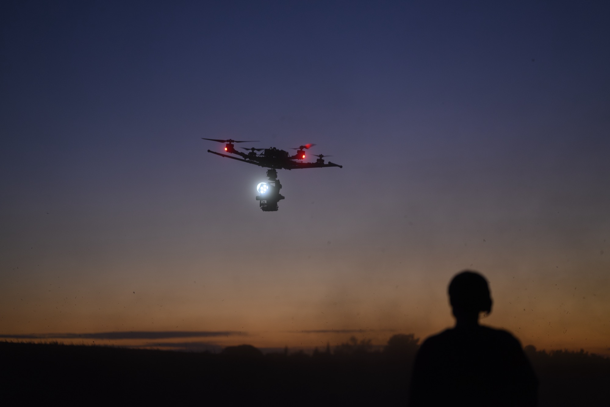Zur Immitation eines Helikopter-Suchscheinwerfers haben wir eigens für den Einsatz im Gimbal an der Drohne ein 600W ACL Spotlight entwickelt.